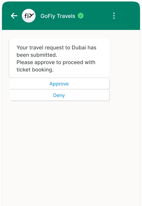 Need approvals, alerts or OTPs that integrate with your apps? Peach allows you to seamlessly integrate these journeys with just an API call.